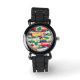 Cute trains and trees pattern blue watch