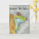 Friendly and cute! Light green tree frog poking his head out from behind a stump. Light grey textured background creates a swampy atmosphere. Done in traditional watercolor. Happy birthday card with a nice message inside.