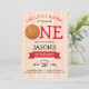 Introducing the Cute Trendy Basketball Court & Red Ribbon 1st Birthday Invitation! With its basketball court background, playful font, and basketball as a centre stage adorned with a red ribbon, this invitation captures the essence of a basketball-themed celebration. The orange colour scheme adds warmth, while the cute design appeals to both kids and parents. It's the perfect choice for a kid's birthday party, emphasizing sports and the joy of play. The invitation showcases a vibrant aesthetic and thematic elements, ensuring a memorable and fun-filled event. Get ready to hoop it up and celebrate with this eye-catching and charming first birthday invitation.