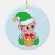 Cute trendy Christmas elf on light blue Ceramic Tree Decoration