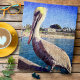 This happy pelican perched on a railing overlooking a California beach screams “vacation ready”. Pleasantly pass the time while you drift back to warm ocean breezes whenever you work on this cute, friendly coastal pelican jigsaw puzzle. Makes a great gift for someone special! Comes in a special gift box.