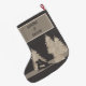 What could be as special as your first Christmas as a couple? This cute and trendy design shows an obviously loving couple sitting together in front of their glittery Christmas tree. The couple is in silhouette with a nice shade of brown for the background matching the couple. Simple and romantic. Just change the date on the front and the names on the back for a truly personal stocking! A charming and unique way to cherish your first Christmas as one!
