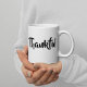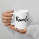 A cute trendy giant coffee mug, created for that minimalist who wants to show appreciation to family and friends this thanksgiving holiday by giving them gifts. Featuring "Thankful" in bold script and calligraphic font.