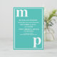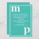 Cute Trendy Monogram Turquoise Blue Wedding Invitation