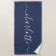 Cute Trendy Script Name Personalised Beach Towel in Navy Blue