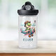 Fuel your little adventurer's journeys with this personalised water bottle featuring a charming dinosaur taking flight in a classic pink and blue biplane! Picture their imagination soaring as they stay hydrated with every sip. This fun and functional bottle is not just adorable, it's reusable and durable, keeping them company on every adventure. Personalise it with their name for a unique and cherished companion they'll love to carry everywhere.