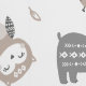 Cute Woodland Animals with a touch of Tribal/ Aztec on white background. Bear, Moose, Fox and Owl in neutral colours.