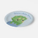 Party paper plates with the illustration of a cute green little triceratops peeking out of the blue eggshell. Perfect for dinosaur themed baby shower for mum to be who are expecting baby boys. Add your message in text template provided. Matching napkins are available too.