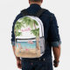 A cool watercolor beach theme with shades of pink and teal, setting the vibe for a beach escape or vibe. Cute pink and white beach chair, umbrella, and even a flamingo floaty for some extra fun. Palm trees swaying, shells to collect—it's all about those chill tropical beach vibes. With modern fonts adding a stylish twist. Colourful Cute Girly Tropical Watercolor Beach Printed Backpack. Great for back to school for your children, or for a teacher appreciation or holiday gift.