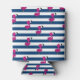 Sweet and summer design featuring cute little baby flamingo, white and navy blue stripes.