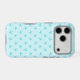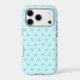 A cute teal blue starfish pattern iPhone case. Design features tiny watercolor teal blue starfish on a light teal background.