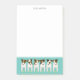 These Parson / Jack Russell Terriers Post-it® Notes for JRT lovers feature an illustrated lineup of six "Jacks" with various brown and black ear, head and body markings, each with an adorable head tilt and a tennis ball at her feet - the name and background colour, shown here in light teal, are customisable - Jack Russell Terriers pattern design © katz_d_zynes 2019