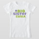Cute tulip big sister design features the words BIG SISTER with a cute smiling purple tulip for the "i" in sister. Text colours are green and purple. Perfect to let the world know who's who in your family or if a new baby is on the way. Customisable text for a one of a kind gift. Matching Little Sister design. PinkInkArt original!
