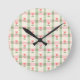 Cute Tulip Checkered Pattern | Pastel Floral Round Clock