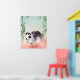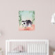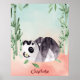 Illustration of a black and white cute panda bear tumbling near green watercolor bamboo. It is an excellent design for panda lovers or fans of super cute animals. The colors are pastel and look like a watercolor painting. This print will brighten up any kid's bedroom or playroom. Can be personalized with your child's name.