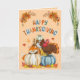 Cute Turkey and Retro Pumpkins Happy Thanksgiving Holiday Card