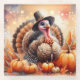 This seasonal Thanksgiving coaster features an AI generated image of a whimsical turkey wearing a pilgrim's hat, done in a watercolor wash style. He's standing amongst pumpkins and corn with fall foliage. The background features the colours of different shades of purples, blues, oranges and yellows with bokeh lights. Add text on this using Zazzle's many different font styles and colours to customise it to your preference. Zazzle also has many backgrounds that you my choose from, as well as icons that you can add to make the image your own. Have fun making it just the way you like! If you need any help customising this design, please don't hesitate to contact me, and I will be more than happy to assist you. You may contact me at KarenCoffelt@wolfmoonartanddesign.com or through Zazzle by clicking on the Chat button (please be aware that I am not available 24/7 to chat, but I will get back you ASAP). Thanks for looking!