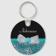 Cute Turquoise Cheetah Print Frilly Bow and Name Key Ring