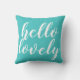 This chic turquoise "hello lovely" pillow is perfect for adding a trendy touch of style to your home.