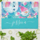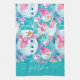 Cute turquoise snowmen script name tea towel
