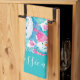 Cute turquoise snowmen script name kitchen towel. Personalize name.