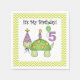 Cute Turtle 5th Birthday paper napkins feature a green turtle with yellow hearts and a purple polka dotted party hat, a single lit purple polka dotted candle, a purple number five, one green balloon, text that reads It's My Birthday, and a border of white and green chevron stripes. We have the matching turtle 5th birthday paper plates too!