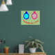 This poster features a cute image of a blue turtle and a pink turtle side by side. The cute couple have eyes only for eachother and cute little tails. The shell of the turtle is made of two shades of pink for the female and blue for the male. These guys are turtally in love and would make a great gift for couples.