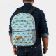 Design front pocket features the image of a turtle with baby turtle. Pattern of this image is displayed throughout. Background is blue to give the impression of water. The word "Righteous!" is displayed as an arch in green and is customisable.