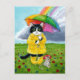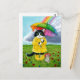 Cute tuxedo cat, mouse, with rainbow umbrella postcard
