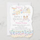 This really sweet Baby Shower invitation for Twin Girls features an illustration of the cutest little baby girls sitting back to back on a swing. The swing is hanging from the colourful word "Twins' which is decorated with flowers, polka dots, and stripes. In-between the letters of the word "Twins" are tiny animals, and lying across the back of the letter "S" is a cute little clown. A pattern of colourful safety pins and a repeat of the word "Girl" fills the bottom of this adorable invitation card, and the same pattern also covers the back. Original artwork by Carol M.Kearns.