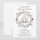 A whimsical cute baby shower by mail for twins featuring sweet baby elephants holding each others trunks, surrounded by a delicate botanical wreath.
