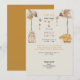 Colourful Watercolor Baby Boy and girl clothes. Baby Shower Invitation. Cream and yellow background. Twin.