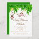 Start your twins safari baby girl baby shower or twin jungle boys baby shower off right with our cute our little monkeys baby shower invitation. Invitation features adorable twin monkeys swinging on a vine with jungle leaves set on a crisp white background. ©Mujka Chic