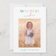 Cute, customisable family photo card with "Warmest Wishes" in friendly lettering and confetti on the back, in trendy pastel rainbow colours: teal blue, pink, yellow, green, & coral.