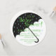 Adorable Umbrella themed Baby Shower invitation with shower of blue raindrops! The round shape of the card forms the top of the Umbrella! Text detail & colour customisable.
