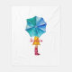 Cute Umbrella Girl Watercolor Monogrammed Fleece Blanket