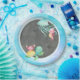 Cute watercolor under sea creatures, sea turtle, sea horse, crab, and jellyfish over watercolor and chalkboard look backdrop paper plate.