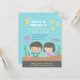 Your children guests are going to be excited to receive this cute and colourful invitation to an aquarium birthday party! The invitation has a boy and girl who are looking on happily at the underwater animals in the aquarium. The large aquarium tank is filled with aquatic animals which include fishes, jellyfish, seahorse and pink starfish. The tank is decorated with coral reef and water plants. Great for under the sea, underwater and ocean themed birthday parties. The font used is like bubbles too! Gender neutral invite which is great for birthday boys and girls! Personalise easily with your party details.
