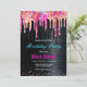 Cute unicorn black glitter birthday monogram invitation