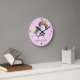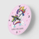 Cute Girls Pink Rainbow Unicorn Kids Name round wall clock.