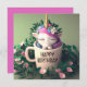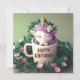A cute little unicorn inside a mug surrounded by greenery.