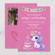 Cute unicorn in pink background with family photos for 2nd birthday party invitation of a baby girl