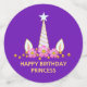 Beautiful chic magic Birthday unicorn on royal purple and saffron table confetti. Unicorn is decorated with pink flowers and gold confetti. Ideal for birthdays, and any other magical celebration. All texts can be personalised.