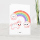 Super cute little pink unicorn with moustache and happy rainbow cupcake friends!