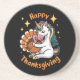 Cute Unicorn Hugs Turkey Happy Thanksgiving Girls Coaster