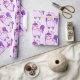 Wrapping paper with a whimsical drawing of a cool and funky pink cubby unicorn which has a purple mane and tale. This cute creature is wearing heart-shaped sunglasses and is decorated with little stars. Pink watercolor background.