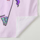 Tapestry with a whimsical drawing of a cool and funky pink cubby unicorn which has a purple mane and tail. This cute creature is wearing heart-shaped sunglasses and is decorated with little stars. Pink background.