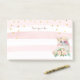 The background has watercolor pink and white brush strokes and some [simulated] gold glitter on the top. In the corner, you see an adorable baby unicorn illustration with delicate flowers (which you can move and resize if you click to edit using the design tool). Your name is written in beautiful cursive letters.