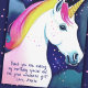 Cute Unicorn Magical Stars Girl Birthday Thank you Card. This beautiful and magical card is perfect for a special birthday girl to thank hers birthday party guest. The card features a cute and beautiful unicorn drawing and colourful stars on a cloudy sky. Personalise the card with your text and name.