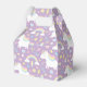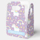 A cute and colour favour box to match your unicorn themed birthday party! Design comes with a cute little white unicorn with pastel colour mane of red, blue and yellow. Various decorative elements of little girl favourite things surrounds the unicorn which includes stars, cotton candy, flowers, candy and lollipop, floral leaves, hearts, popsicle ice cream, cupcake and rainbow! Purple background can be changed in customisation mode. Perfect for birthday girls!